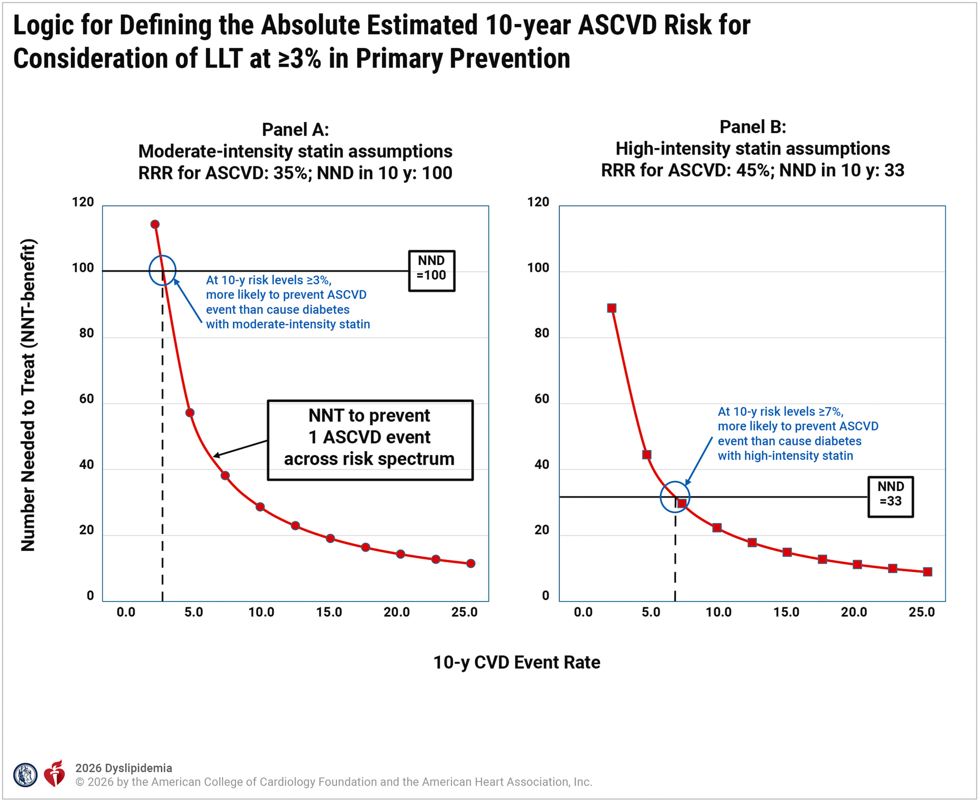 The guidelines often utilize the Number Needed to Treat (NNT) to conduct a form of net benefit analysis to determine treatment thresholds (e.g., the 3% threshold for statin use as shown below). As a clinician, I’m trying to understand if this is a statistically sound way to define a decision point.