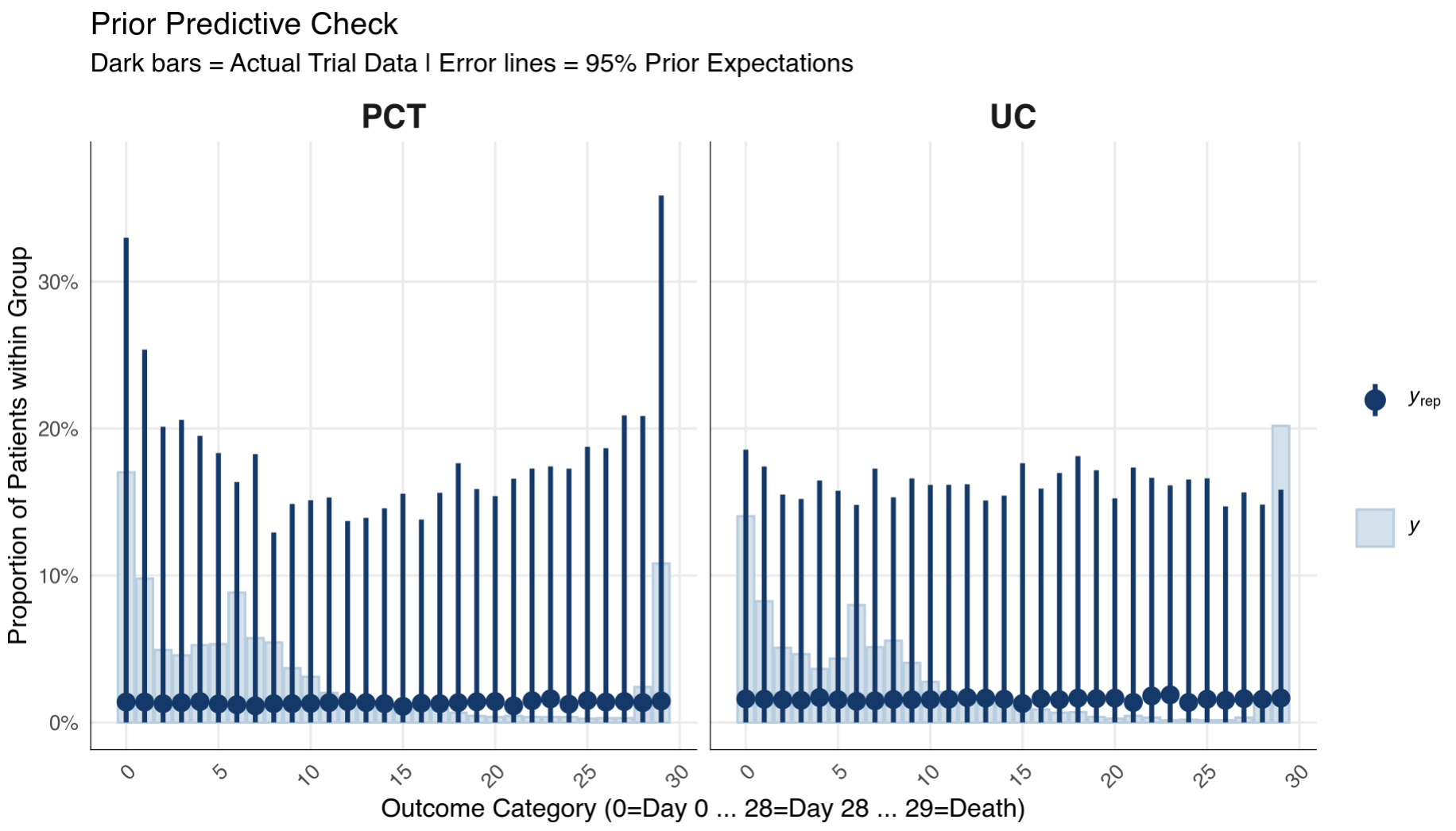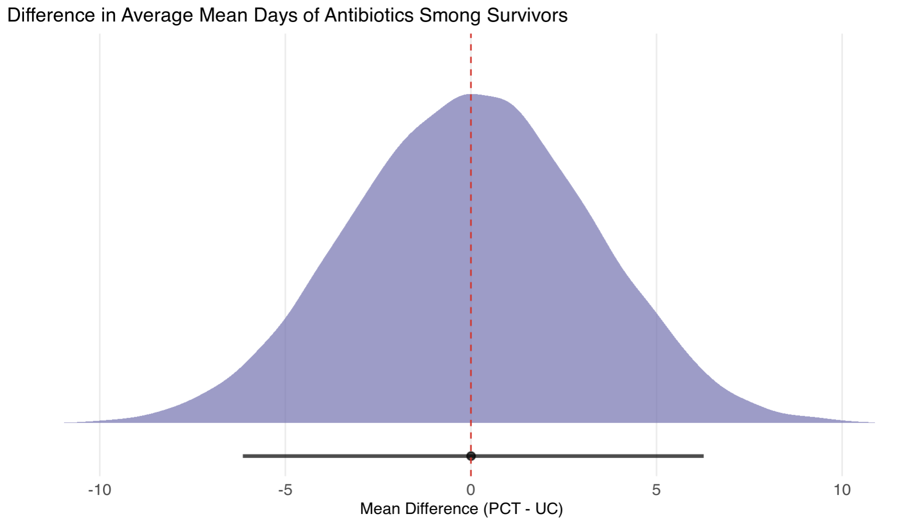 I simulated a dataset with 5453 patients (2715 in UC group) with ~0.2 in PCT and ~0.1 mortality rates in UC. Many patients didn’t get any antibiotics (Y=0) and many got around 7 days because this is a common duration for antibiotics.