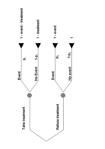 The observed utility for y=1,t=1 is 1-event-trt, i.e these patients would be better off without the useless and harmful tretment (counterfactual utility for y=1,t=0 is 1-trt).