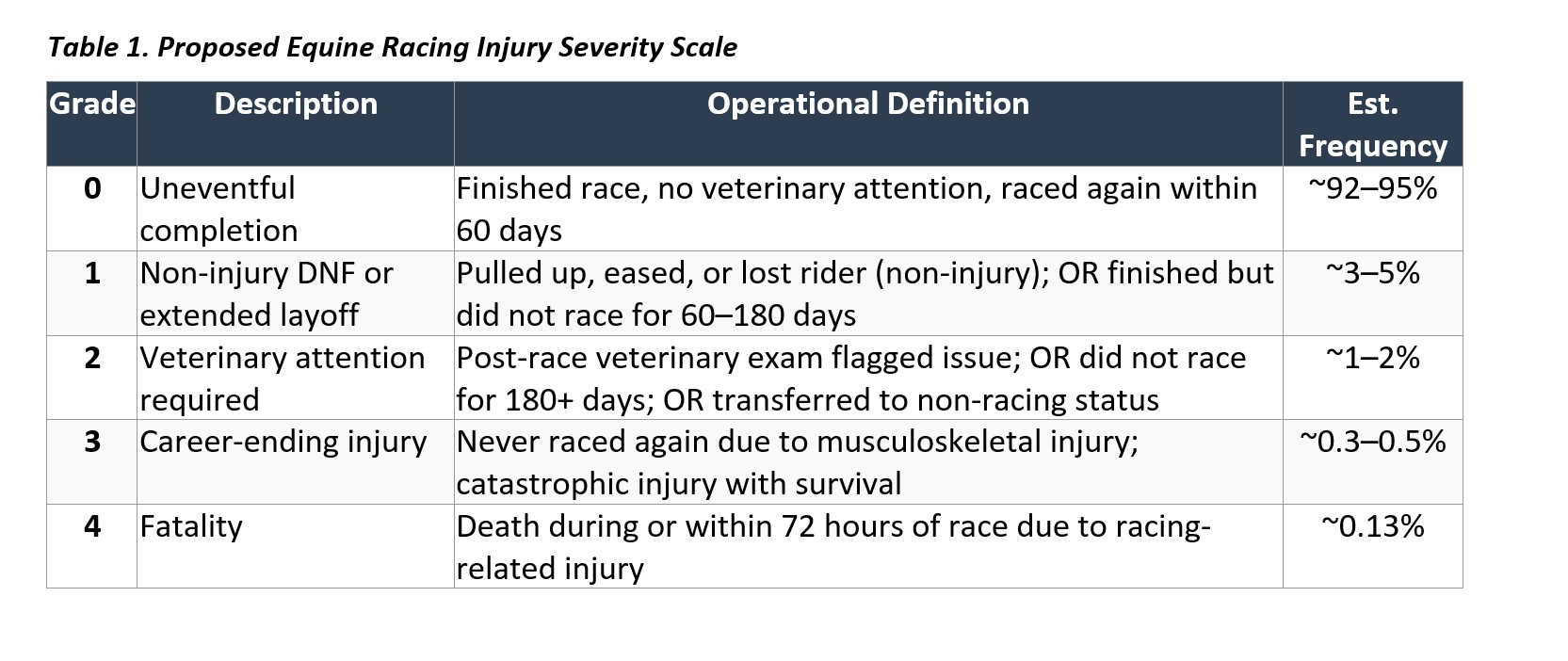 What’s actually occurring in the real world here, as opposed to the data tables? How many of the MSI’s are due to identifiable moments in the race where a ‘mechanical’ factor can be seen on the tape? (I’m adapting the lingo ‘mechanical fall’ used in medicine to distinguish tripping on an obstacle from an organic cause like syncope.) How many of the cases lack any such identifiable ‘mechanism of injury’? What are these injuries, anatomically? Etc.
