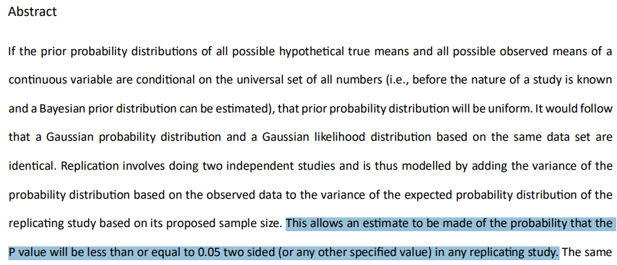 You’re saying that you’re not claiming that your “Predictive Probability of Replication Success” is a mathematical consequence of certain assumptions (in particular assuming a flat prior)?