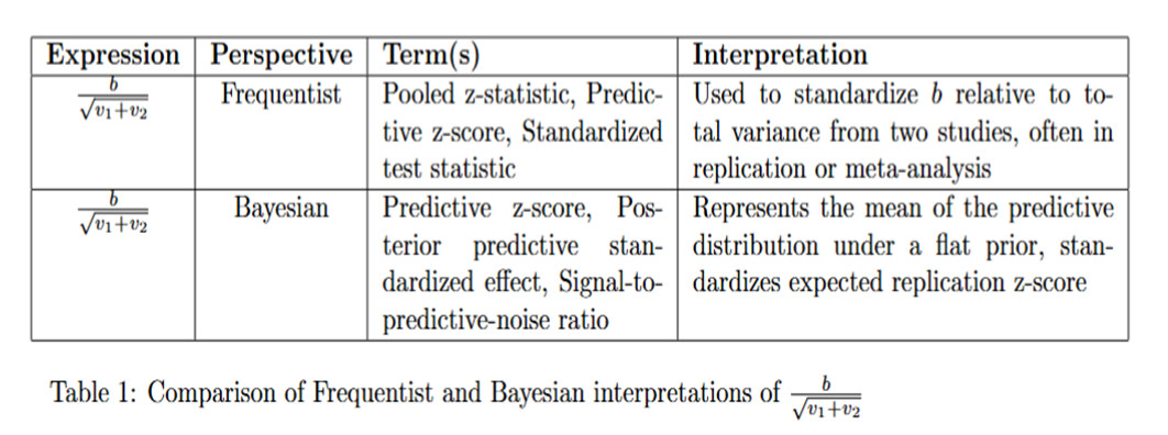 I was again amazed that you claimed I misrepresented your views when I had derived your own “predictive replication probability” in the context of the model we had agreed on! Maybe you didn’t like the name z^\text{Huw}_\text{repl}. Perhaps I should have used x_\text{repl}=b_\text{repl} /{\sqrt{v_1+v_2}}. A rose by any other name …